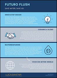 Futuro Flush is een waterbesparend toilet van gerecycled materiaal. Het toilet heeft een geëmailleerde sifon voor een efficiëntere spoeling en langere levensduur. Daarnaast heeft de Futuro Flush een verbruik van 2,6/4 liter per spoeling en is er een ingebakken reduceerring toegepast om het waterverbruik te verminderen. Het toilet wordt gekenmerkt door een moderne en slanke vormgeving en is beschikbaar in glans wit, mat wit en mat zwart.