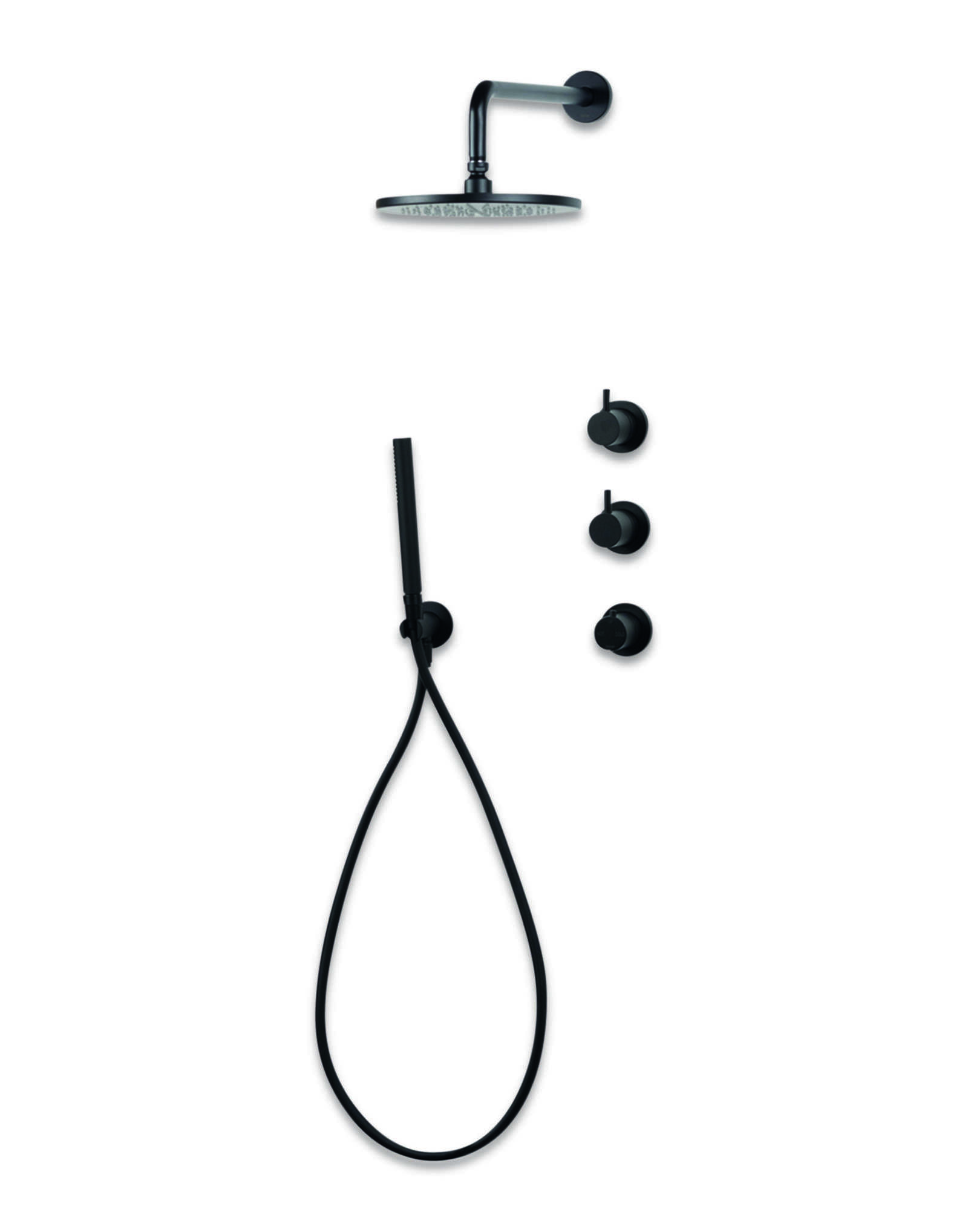Set: inbouw thermostaatkraan incl. twee stopkranen, hoofddouche 22,2cm, douchearm 35cm en handdoucheset