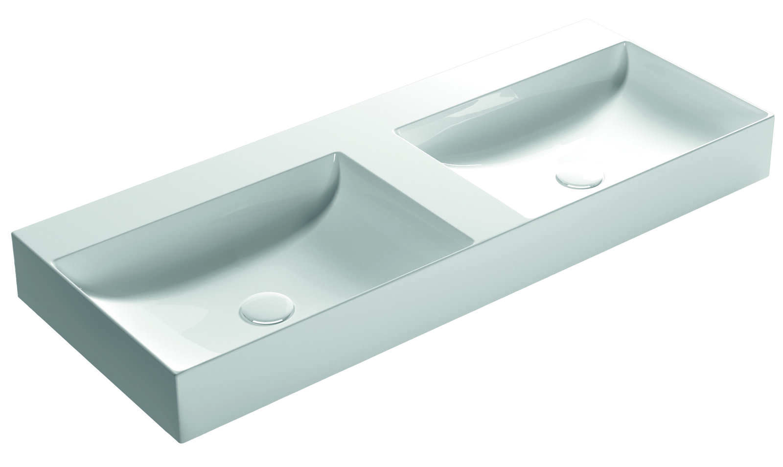Ruimte en elegantie komen samen in deze wastafel van 120x47x12cm. Met overloop en zonder kraangat is hij perfect voor gebruik met een opbouwkraan. Geschikt voor zowel opzet- als muurmontage.