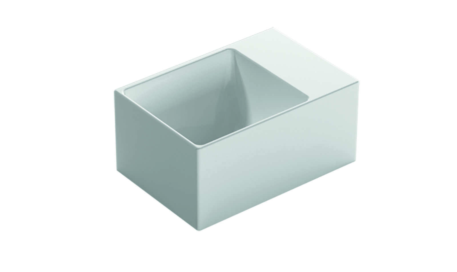 Deze compacte fontein van 30x20x14cm combineert functionaliteit met strak design. Dankzij het slimme formaat en de mogelijkheid tot zowel opzet- als muurmontage is hij ideaal voor toiletruimtes. Het kraangat en de overloop ontbreken bewust voor een minimalistische uitstraling.