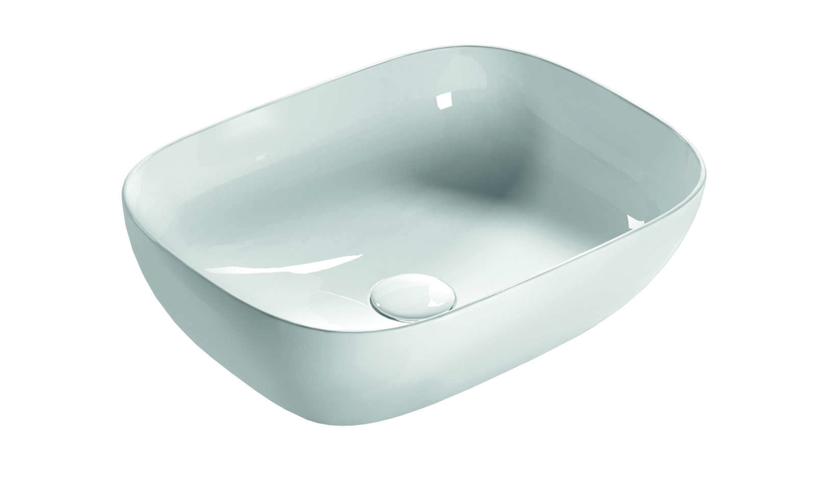 Strak vormgegeven opzetwastafel van 50x38x16 cm, zonder overloop, ideaal voor een moderne en minimalistische badkamerstijl.