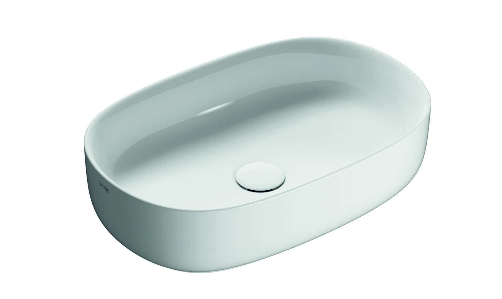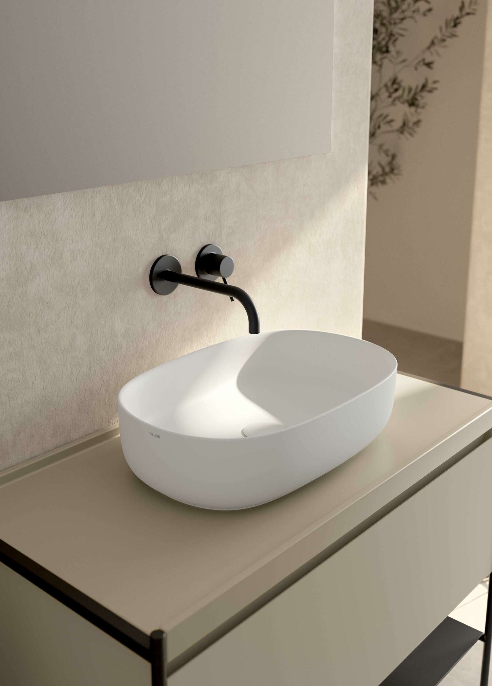 Opzetwastafel 55x36x14 cm, zonder overloop, strak en praktisch voor een moderne badkamer.