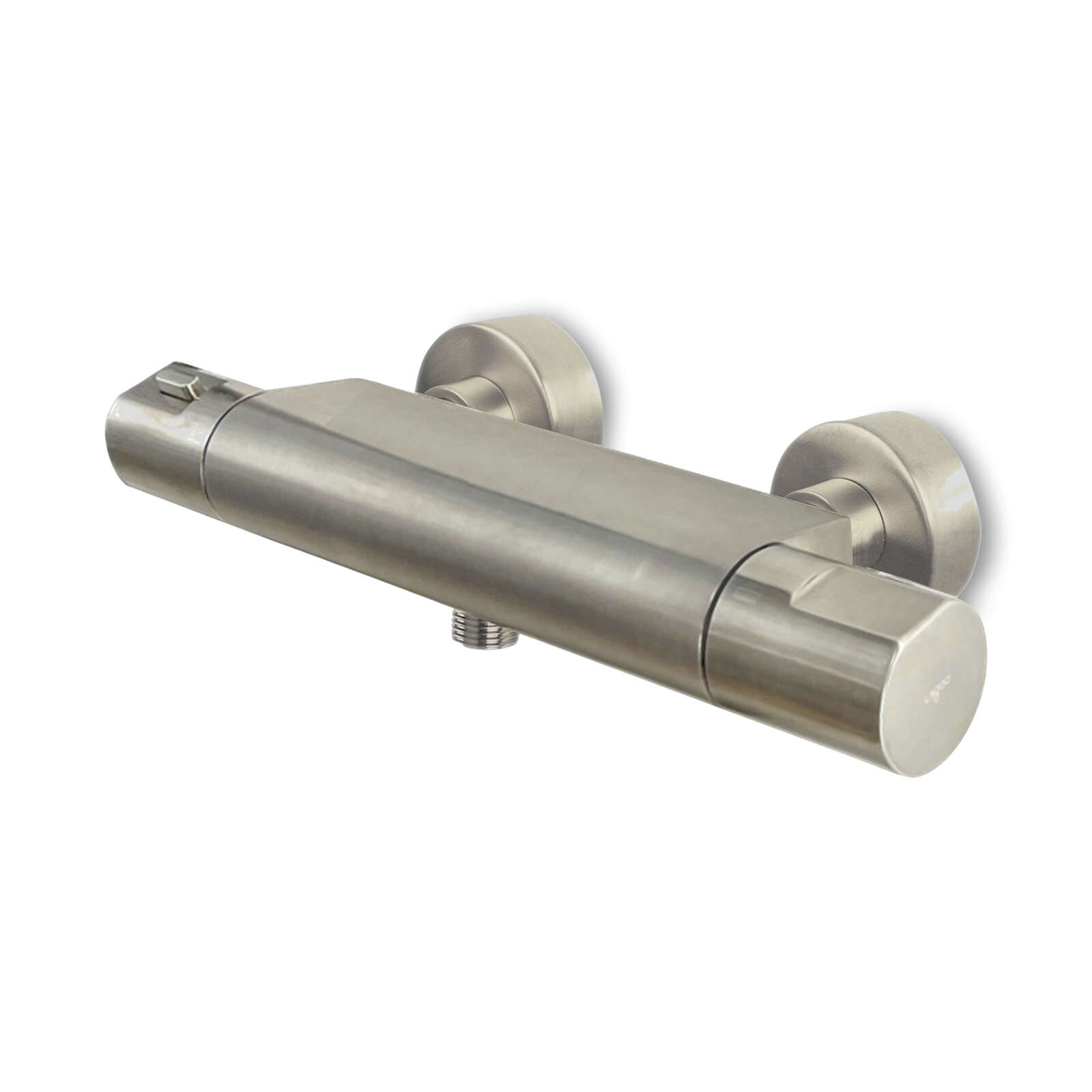 Een strakke en gebruiksvriendelijke thermostaatkraan voor de douche. Dankzij de thermostatische regeling geniet je altijd van een constante watertemperatuur, terwijl je met de eenvoudige bediening snel de juiste stand kiest. Veilig, comfortabel en stijlvol in iedere badkamer.