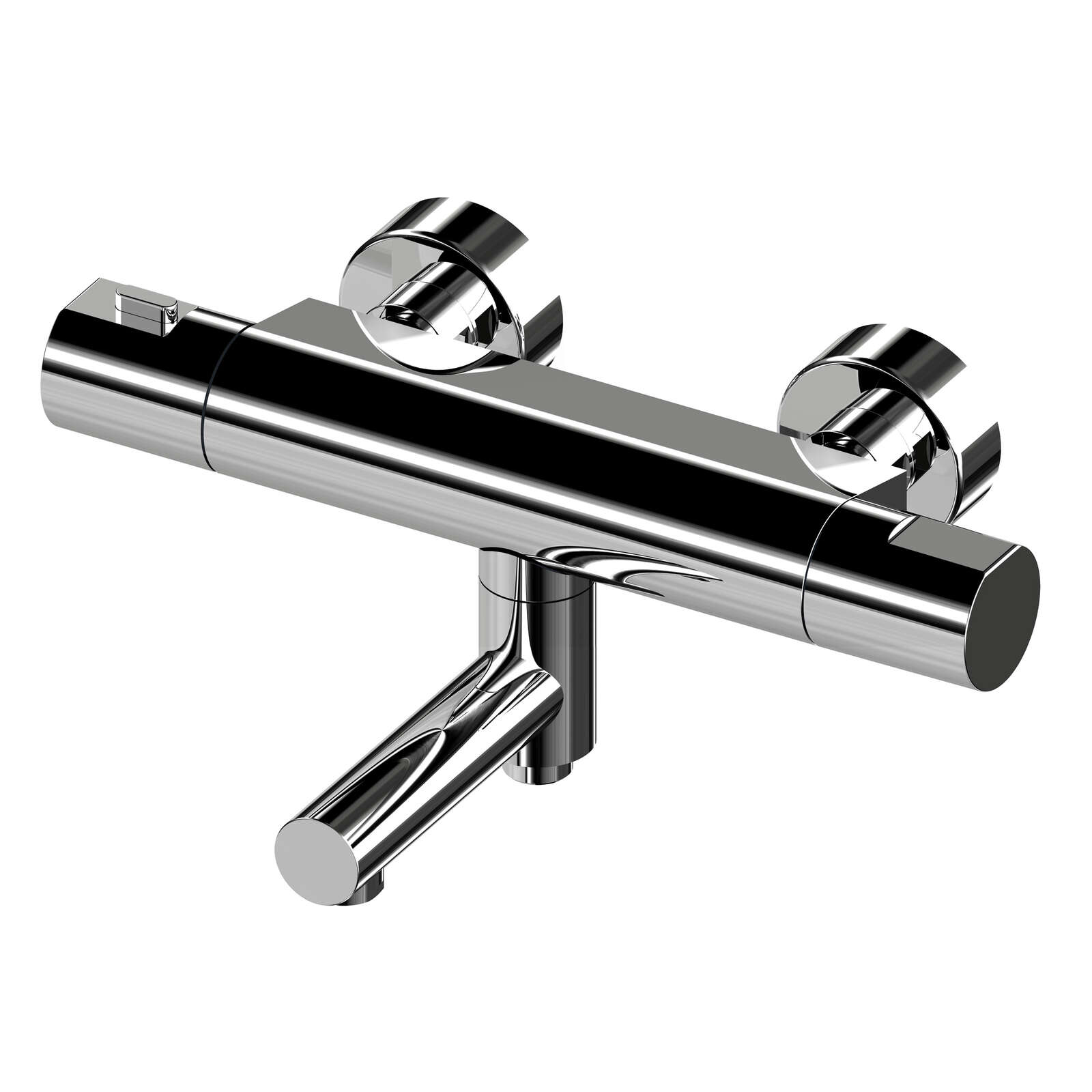 Deze stijlvolle badmengkraan combineert comfort en gebruiksgemak. Met de thermostaat stel je eenvoudig de gewenste temperatuur in, terwijl de geïntegreerde omstelknop je laat schakelen tussen de uitloop en de handdouche. Perfect voor een ontspannen en praktische badervaring.