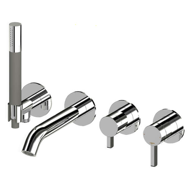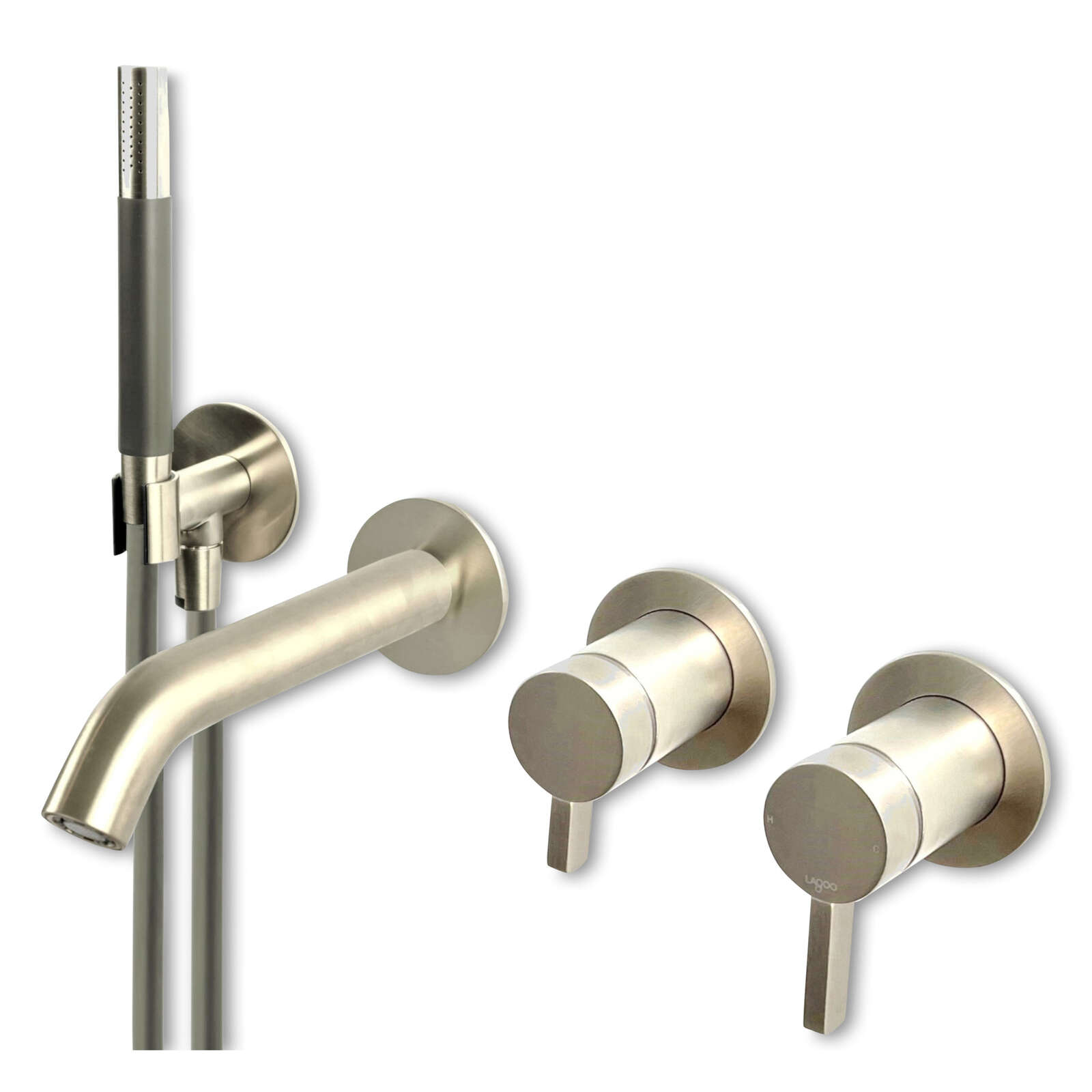 Inbouw badmengkraan (afbouwdeel) met uitloop, 2-weg omstel, handdouche (staaf) en doucheslang