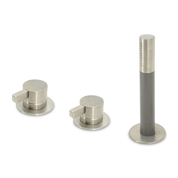 Praktisch en stijlvol: deze badrandcombinatie combineert een mengkraan met 2-weg omstel en een handdouche, zodat je eenvoudig wisselt tussen bad en douche.