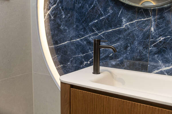 Stijlvol en praktisch: deze medium wastafelmengkraan biedt net dat beetje extra hoogte en bereik voor comfortabel gebruik, zonder in te boeten aan elegantie.