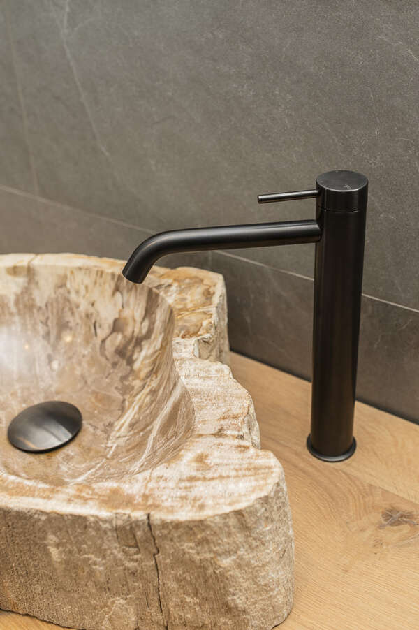 Deze hoge wastafelmengkraan combineert elegantie met extra functionaliteit: ideaal voor diepe kommen of een wat luxere look, met een ruime uitloop voor comfortabel gebruik.