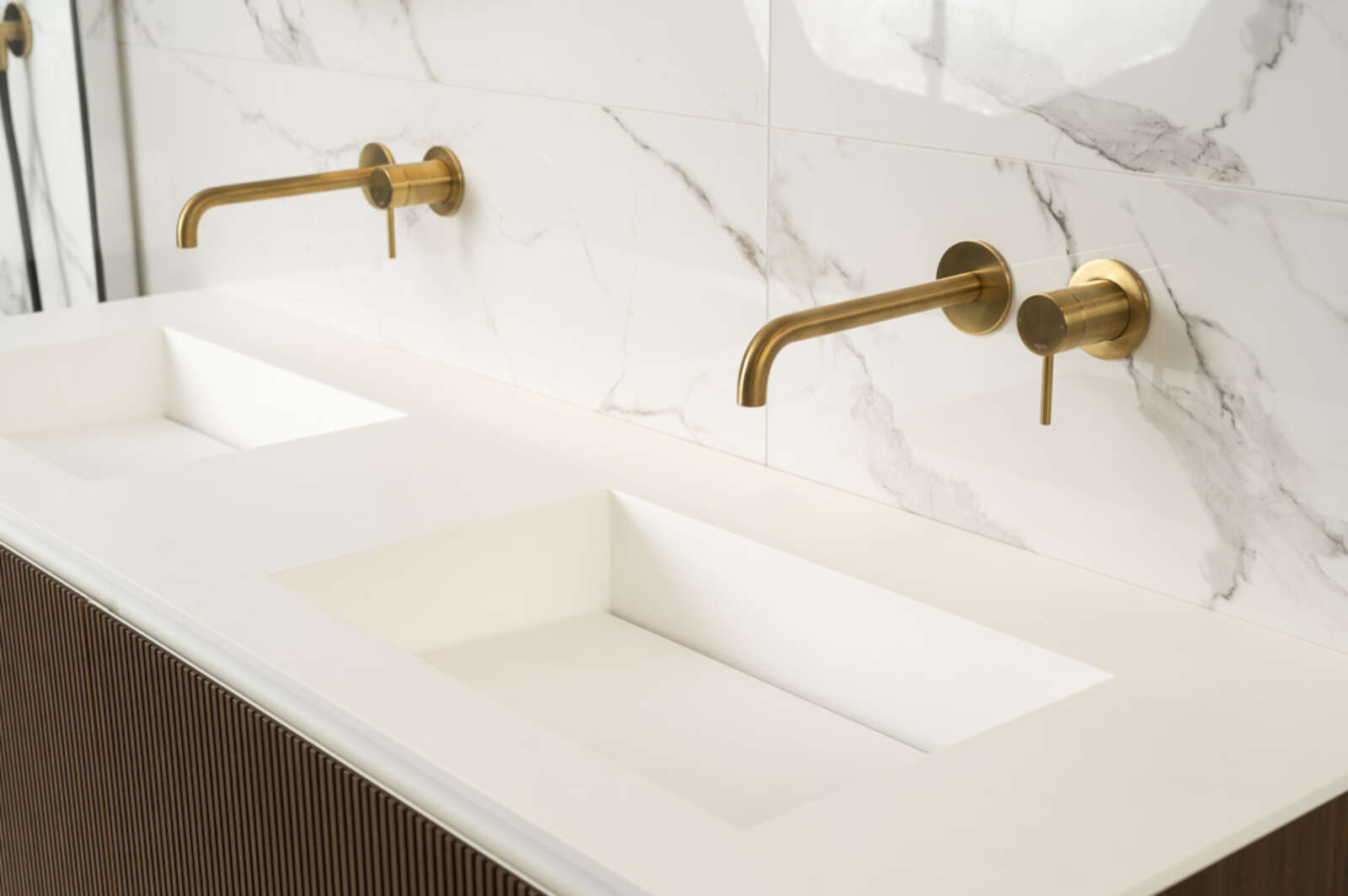 Strak en functioneel: dit afbouwdeel zorgt voor een nette inbouw van je wastafelmengkraan, met een handige linkeruitloop van 15 cm voor comfortabel gebruik en een moderne uitstraling.