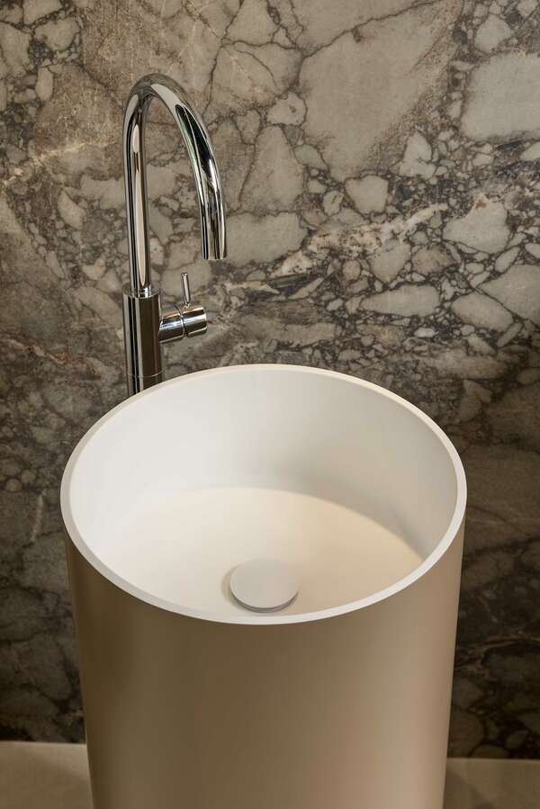 Een elegante kraan die direct op de wastafel of het badkamermeubel wordt gemonteerd. Dit afbouwdeel combineert een strak design met praktisch gebruiksgemak en vormt een stijlvolle afwerking voor iedere badkamer.
