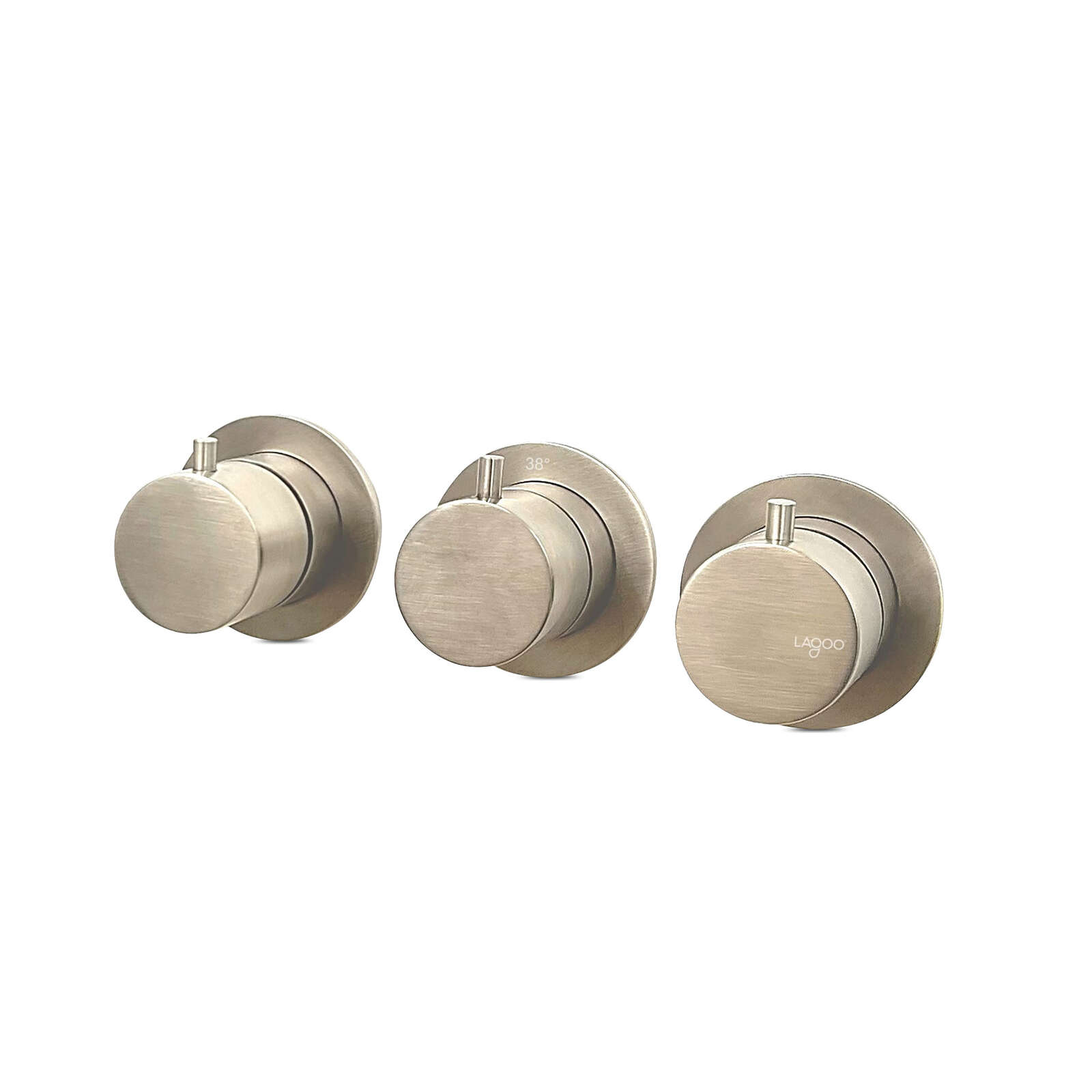 De Tripple7 inbouw douche/bad thermostaat combineert design met veelzijdigheid. Dankzij het 3-weg omstel schakelt u eenvoudig tussen meerdere wateruitlaten, zoals hoofddouche, baduitloop en handdouche. De thermostaat zorgt altijd voor een constante en comfortabele temperatuur, terwijl het strakke ontwerp een moderne uitstraling aan uw badkamer geeft.
