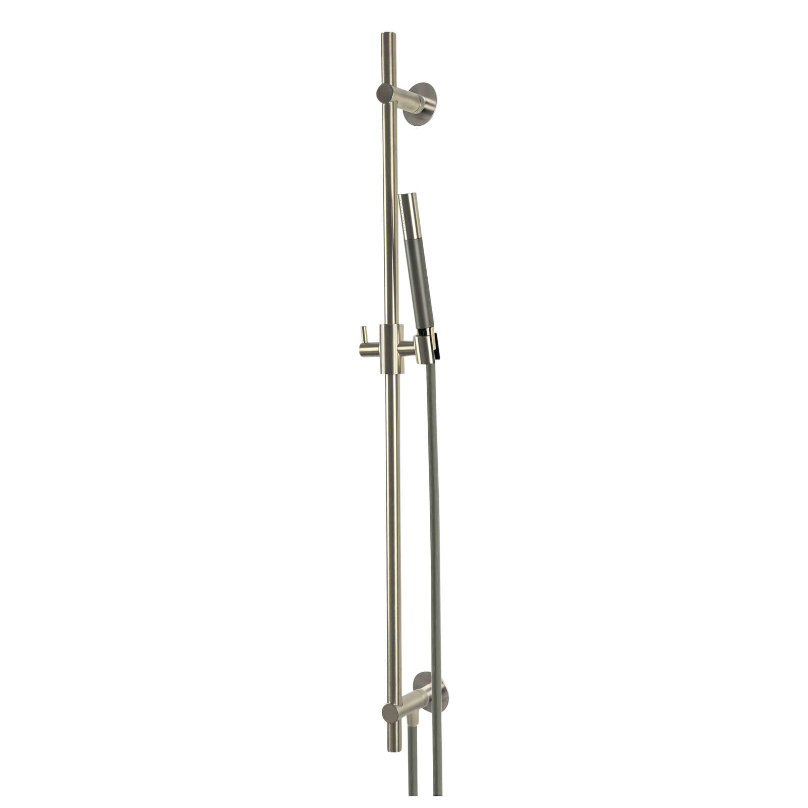 Complete glijstangset met geïntegreerde wanduitlaat, een stijlvolle staafhanddouche en een doucheslang. Een praktische en moderne oplossing voor optimaal douchecomfort.