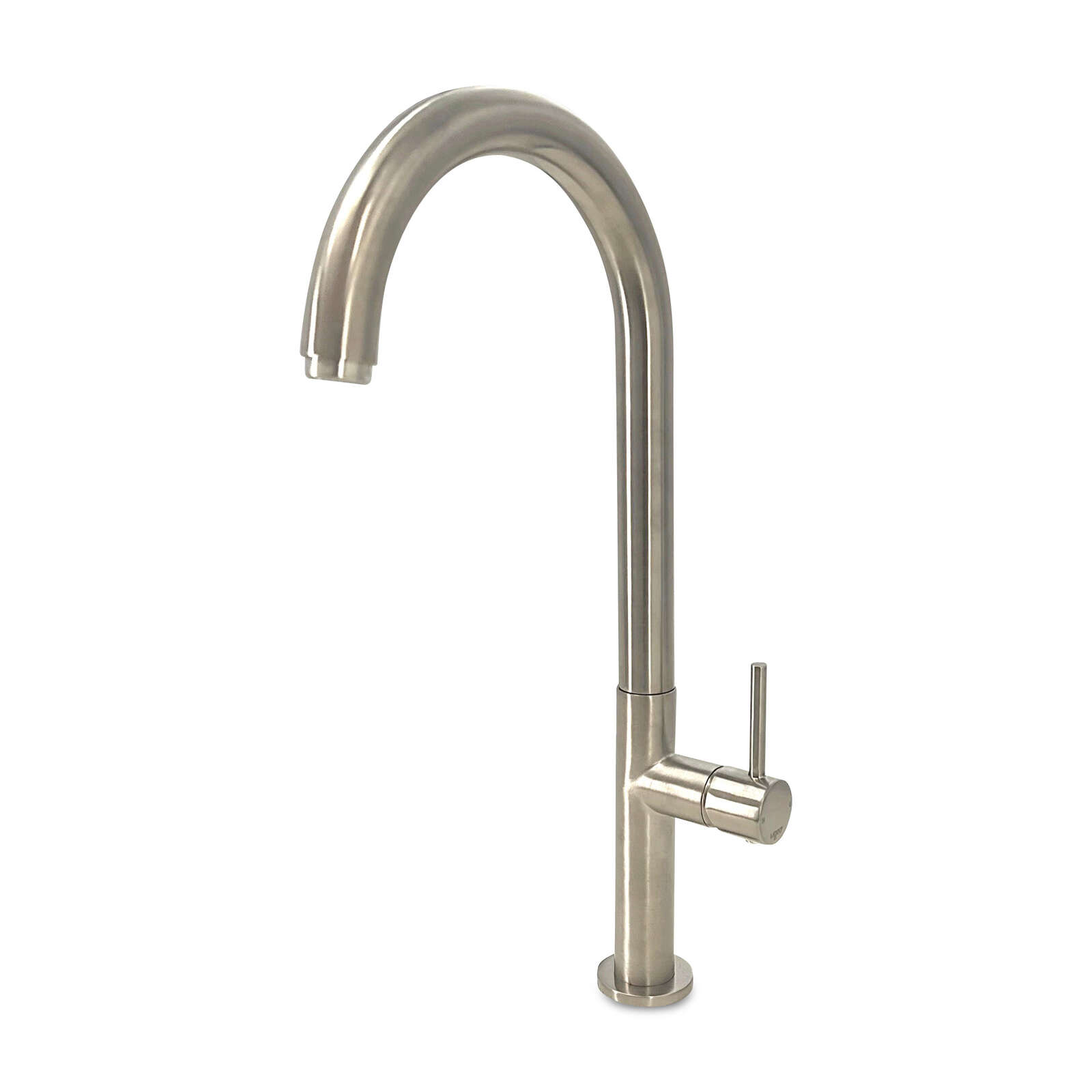 Praktische en stijlvolle keukenmengkraan met een draaibare ronde uitloop, ideaal voor flexibel gebruik en eenvoudig vullen van pannen en kommen.