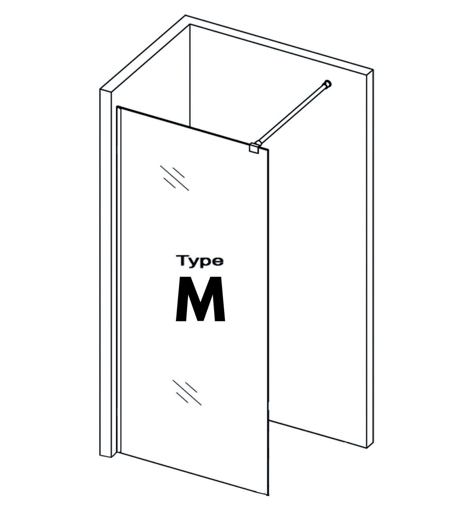 De vaste wand type M is een stijlvolle en functionele oplossing voor een moderne inloopdouche. Met een afmeting van 90x210cm, 100x210cm of 120x210cm biedt deze glazen wand een ruimtelijk effect en een strakke uitstraling in elke badkamer.
