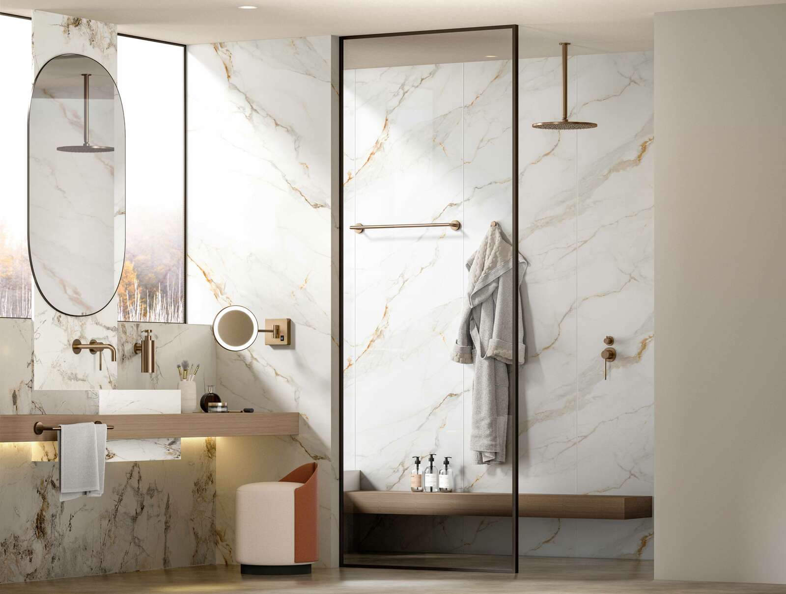 De geïntegreerde verlichting zorgt voor helder, gelijkmatig licht, waardoor elke detailbehandeling, van make-up tot verzorging, moeiteloos en nauwkeurig wordt. Het elegante ontwerp en de hoogwaardige materialen geven de spiegel een luxe uitstraling. Verkrijgbaar in zes exclusieve afwerkingen, Chroom, Geborsteld Nikkel, Geborsteld Koper PVD, Gun Metal PVD, Geborsteld Goud PVD en Tuscany. Zodat hij naadloos aansluit bij uw badkamerinterieur.