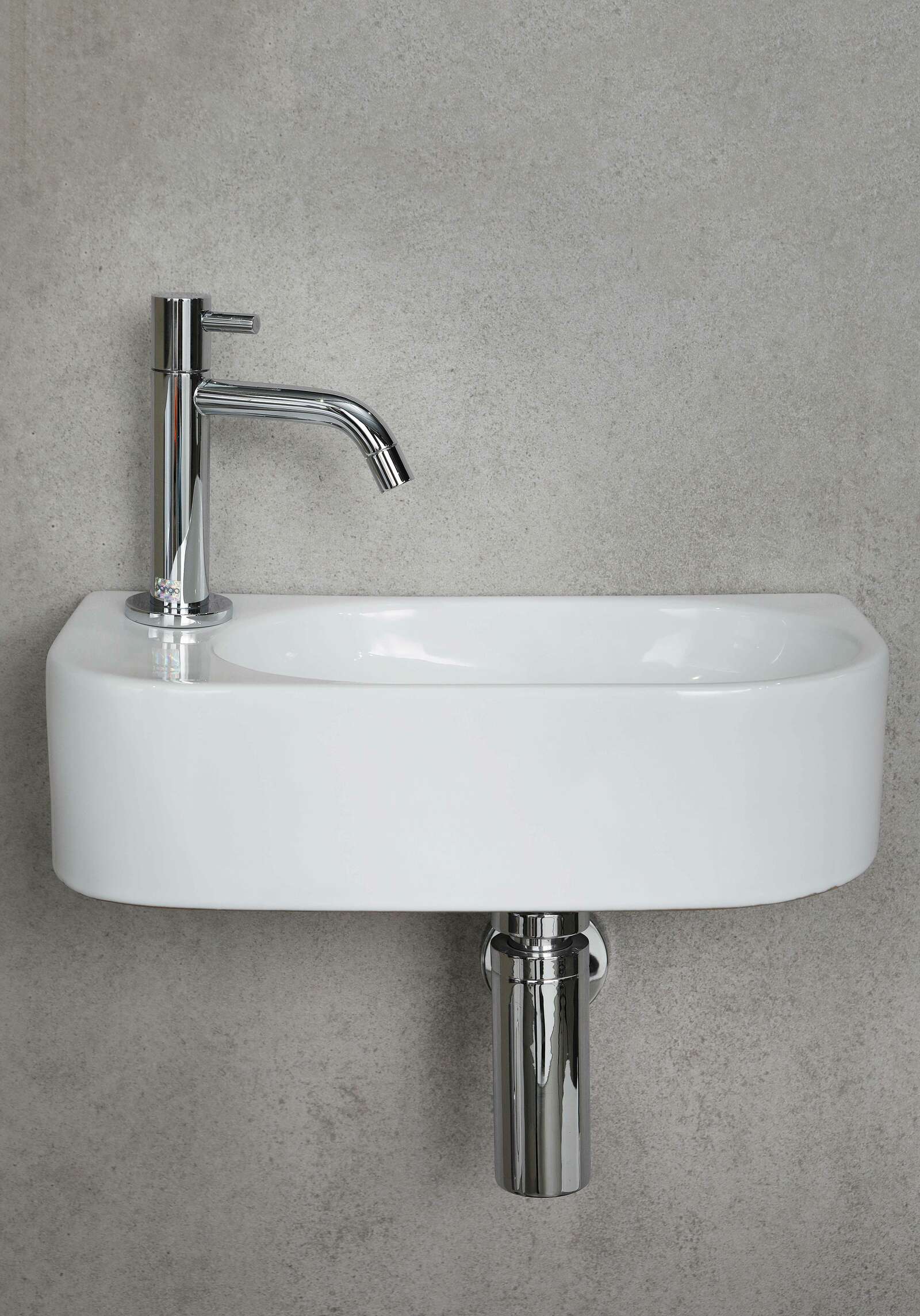 Deze keramische fontein van 40 x 21,5 x 12 cm is een praktische en stijlvolle oplossing voor het toilet. Het bassin aan de rechterzijde maakt het ideaal voor smalle ruimtes waarbij de kraan en afvoer netjes aan één kant zitten.