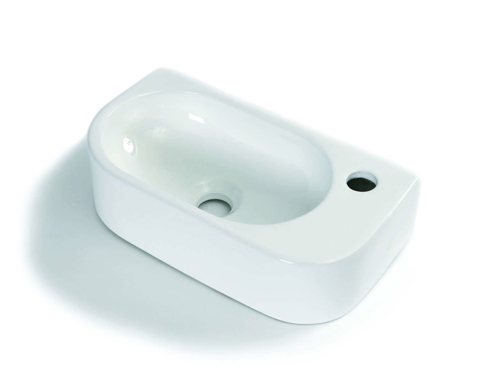 Deze keramische fontein van 40 x 21,5 x 12 cm is ideaal voor compacte toiletruimtes. Met het bassin en het kraangat beide aan de rechterzijde biedt deze fontein een slimme, ruimtebesparende oplossing voor smalle opstellingen.