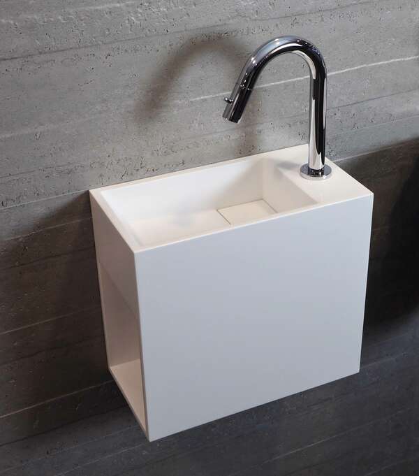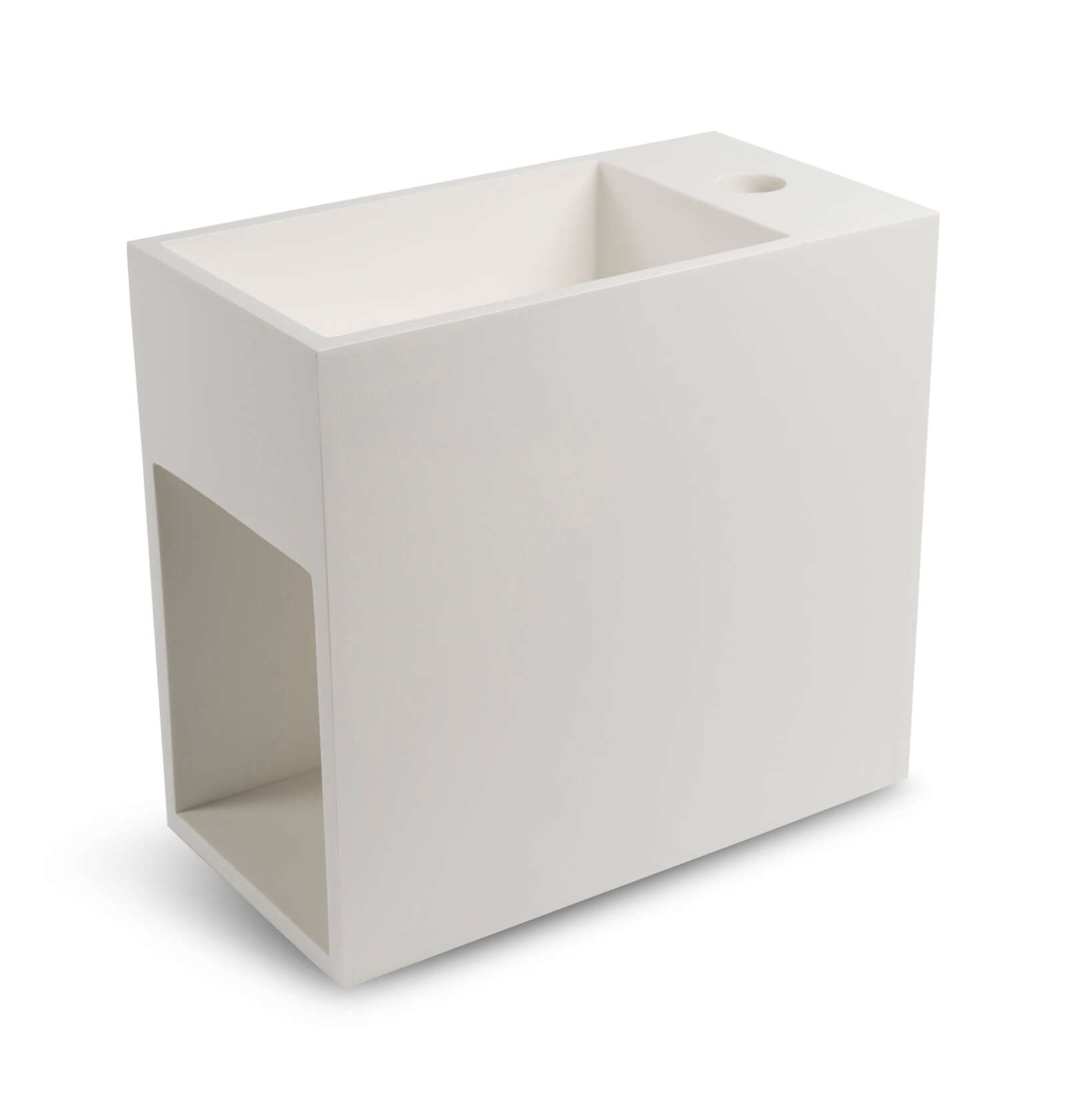 Gemaakt van hoogwaardig en onderhoudsvriendelijk mineral stone / solid surface, een duurzame en elegante oplossing voor het toilet of de compacte badkamer.