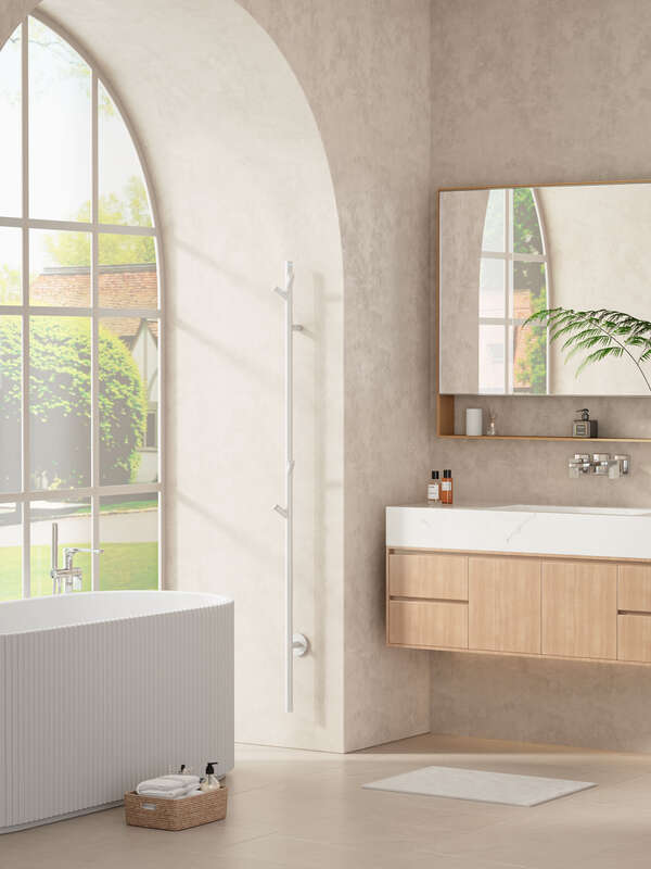 Deze elektrische handdoekwarmer van 170 cm hoog is de perfecte combinatie van comfort en modern design. Uitgevoerd met een strakke LED-ring en een geïntegreerde timerbediening, biedt hij zowel sfeer als gebruiksgemak.