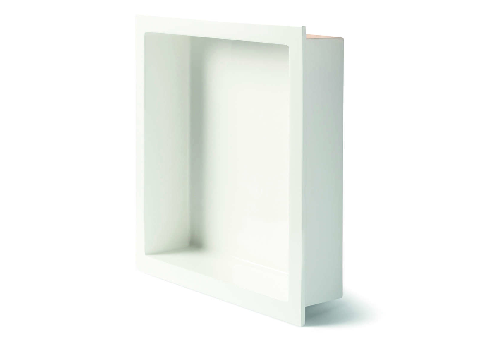 Een elegante, praktische opbergoplossing voor in de badkamer. Geschikt voor inbouw in wand of douchemuur. Gemaakt van hoogwaardig mineral stone / solid surface. Strak, duurzaam en eenvoudig te reinigen. Perfect voor het opbergen van toiletartikelen op een stijlvolle manier.