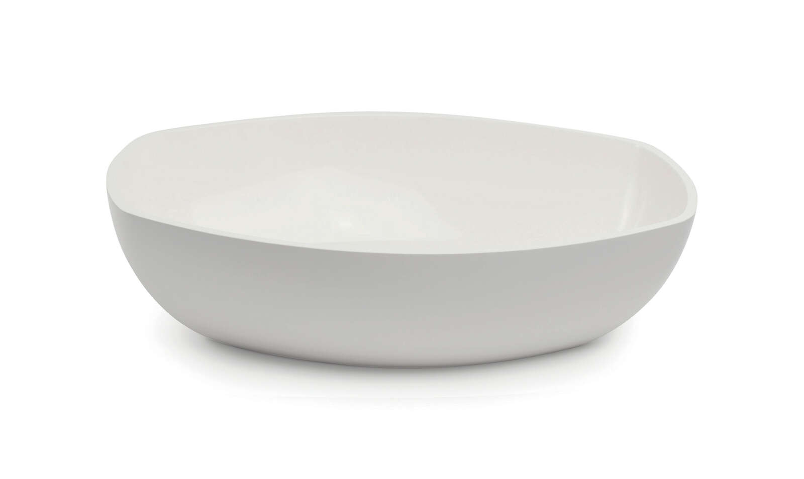 De Danish Oval opzetwastafel van mineral stone / solid surface is een elegante en compacte waskom met een zachte, organische vormgeving. Dankzij het minimalistische ontwerp en het hoogwaardige materiaal past deze wastafel perfect in zowel moderne als Scandinavisch geïnspireerde badkamers.