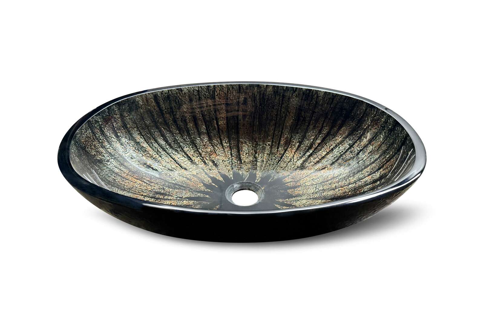 De wastafel in de kleur Multicolour/Black is een echte blikvanger in elke badkamer. Het glas toont een speels samenspel van diepe zwarte tinten en subtiele kleuraccenten, die samen een moderne en luxueuze uitstraling creƫren. Elke wastafel is uniek, het licht vangt steeds anders, waardoor het geheel leeft en ademt met de ruimte.